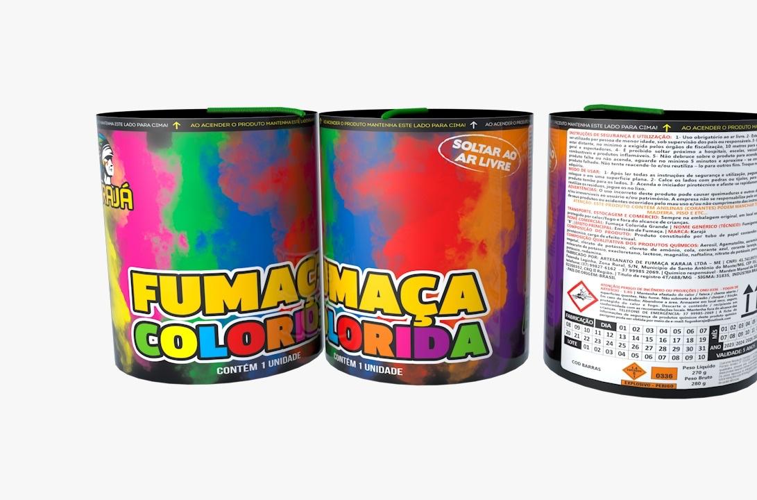 Efeito: Emissão de fumaça nas cores amarela, vermelho, rosa, azul, verde, branca e lilás.